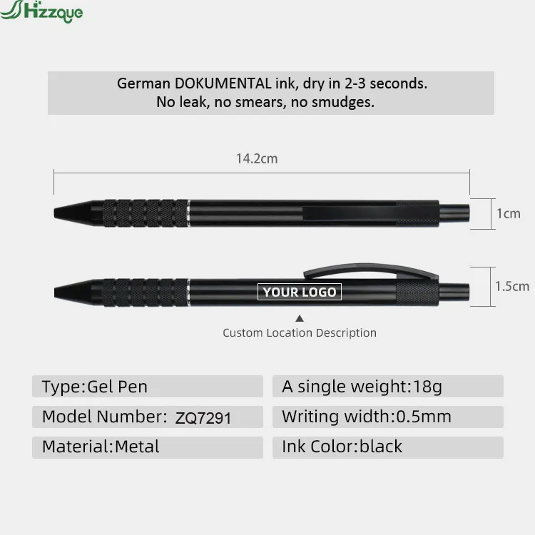 Promotional Advertising Metal Gel Pens with Custom Logo 0.5mm Writing Width Black Ink Pens with logo Custom Printed